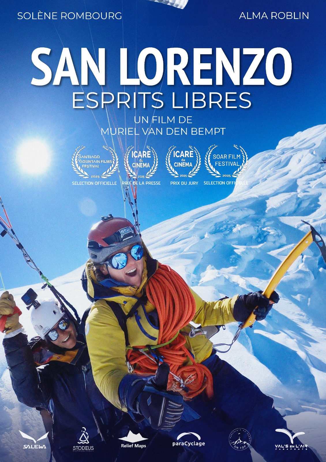 Son film « SAN LORENZO « sur lascencion alpine dun des plus hauts sommet de PATAGONIE et le deco en bi parapente vient de recevoir 2 prix ,celui de la presse et l’icare de la vie qui est la recompense ultime pour cette aventuriere loin des cliches du baroudeur ,accro au rire et a la fantaisie qu a cree l’ osmose avec alma ROBLIN.